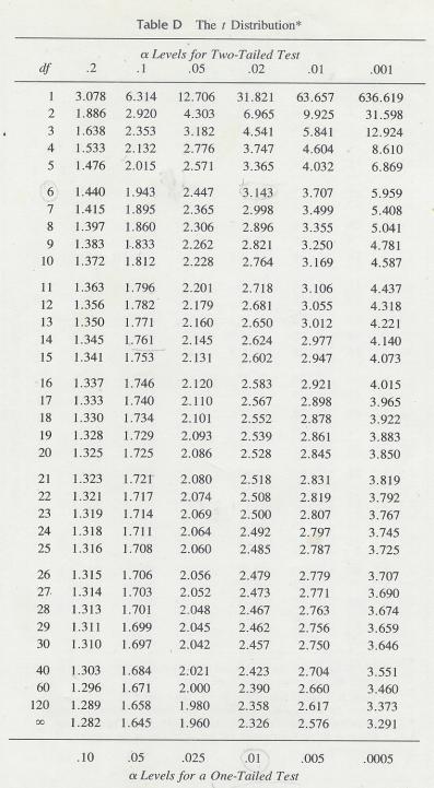 James O Johnston. (1976 1981). Table d the t distribution. Basic